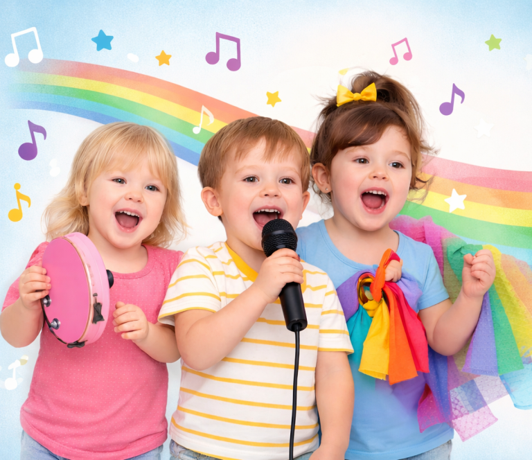 Through a mix of action songs, singing games, movement, and simple instruments, children are introduced to the joy of music while developing confidence, coordination, and listening skills.